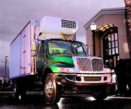 EVOLUTION OR REVOLUTION: Medium-duty trucks like the International 4000-Series High Performance rig on the left, have come a long way since the days when old binders, like the one on the right, helped bushwhack the northern reaches of Canada.