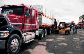 JUST IN: A MacKinnon B-Train rolls into the yard straight from a northern mill.