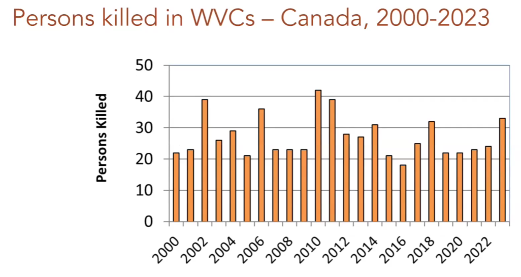 The geography of these crashes closely mirrors freight movement. Alberta accounts for the largest share of wildlife collision fatalities, followed by Ontario and Quebec.