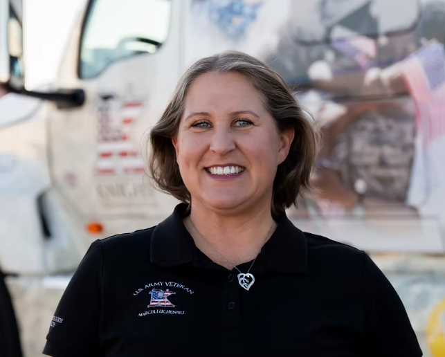Marcia Luchenbill of Knight Transportation, an Army veteran who deployed to Iraq, has nearly 650,000 career miles and is widely recognized in her fleet for disciplined safety practices. She logged more than 193,000 accident‑free miles in the past two years and has mentored more than 20 female drivers throughout her career.